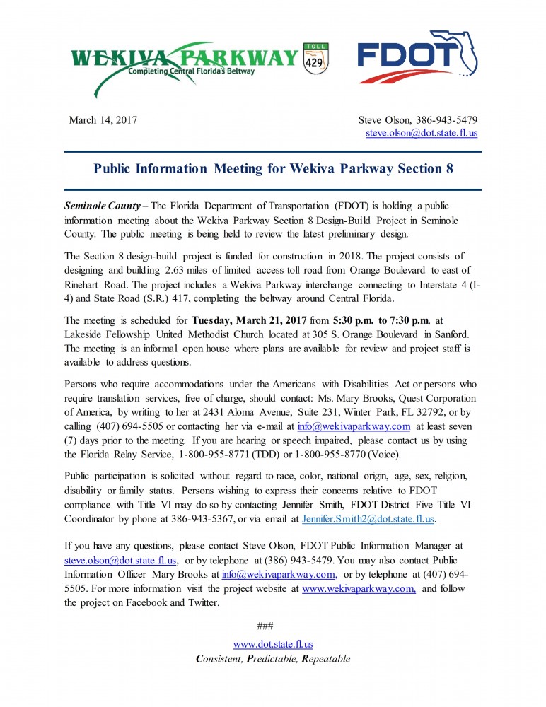 | (APOPKA, FL) – Nighttime road closures are scheduled Tuesday, April 4 and Thursday, April 6 on Plymouth Sorrento Road just north of Haas-Ondich Road. Crews will be setting bridge beams from 8 p.m. – 7 a.m. as part of building the Wekiva Parkway (State Road 429).