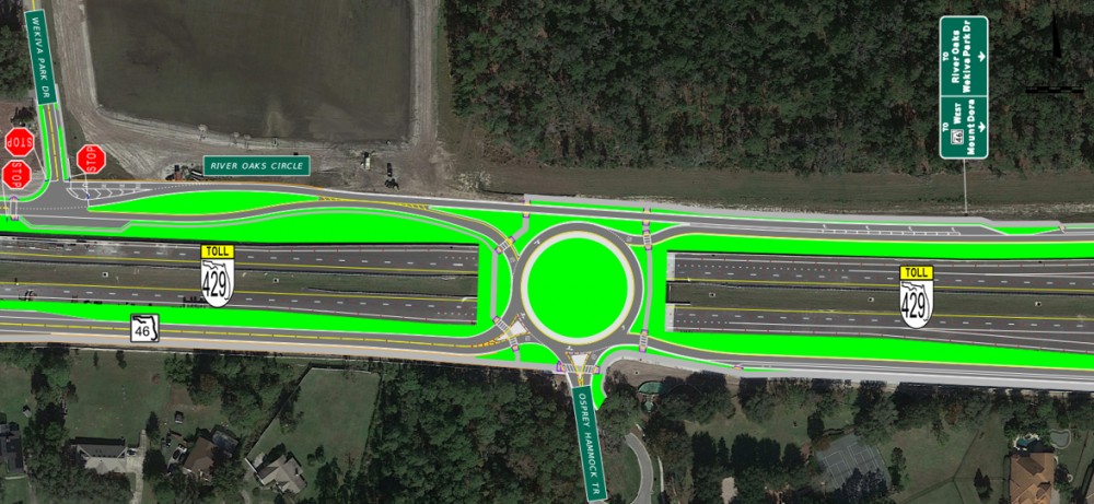 A new bypass just north of the Osprey Hammock roundabout will open Thursday, June 15. The new movement will help motorists on westbound State Road (S.R.) 46 better navigate the series of roundabouts. Those wishing to get to River Oaks Circle and Wekiva Park Drive will have to consciously move to the right to take the bypass. Motorists wishing to stay on S.R. 46 west will stay to the left and take the second exit on the roundabout. Those taking the bypass by mistake can turn around in a designated area – wide enough for tractor trailers – at Wekiva Park Drive.
